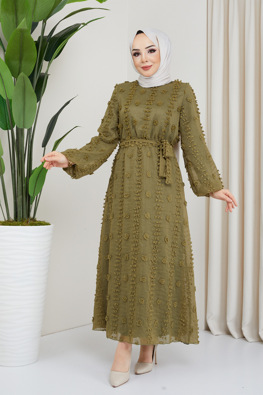 Ürün Tesettür Elbise Kategorisinde olup iade ve değişim yapılabilir.ÜRÜN BİLGİSİ; Kumaş Türü : Polyester Ürün Boyu : 150 cmMANKEN ÖLÇÜLERİ; Bedeni : 38Boy : 175 cm Göğüs : 90 cm Bel : 65 Kalça : 90 cm TESLİMAT: Ürünler kendi depomuzda mevcut olup 24 Saat içerisinde kargo yapılmaktadır. Türkiye içerisinde ortalama 3 iş günü (köylere bir hafta), Yurtdışı siparişlerinde 3-4 iş günü içerisinde teslim edilmektedir (Yurtdışı siparişleri DHL Express kargo ile gönderilmektedir. ..